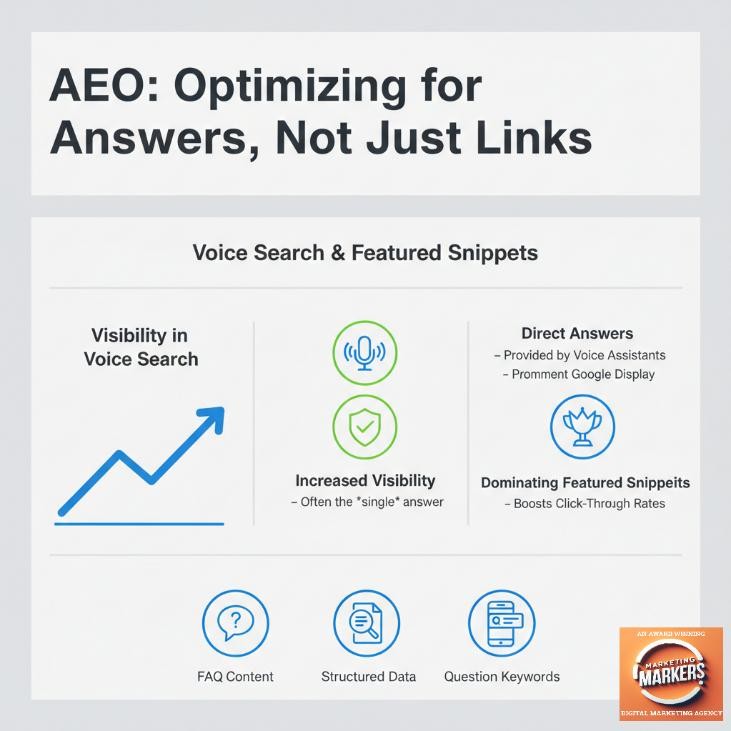 - AEO – ensures your website has the direct answer to “reliable web designer” in its content, ready for the voice assistant.